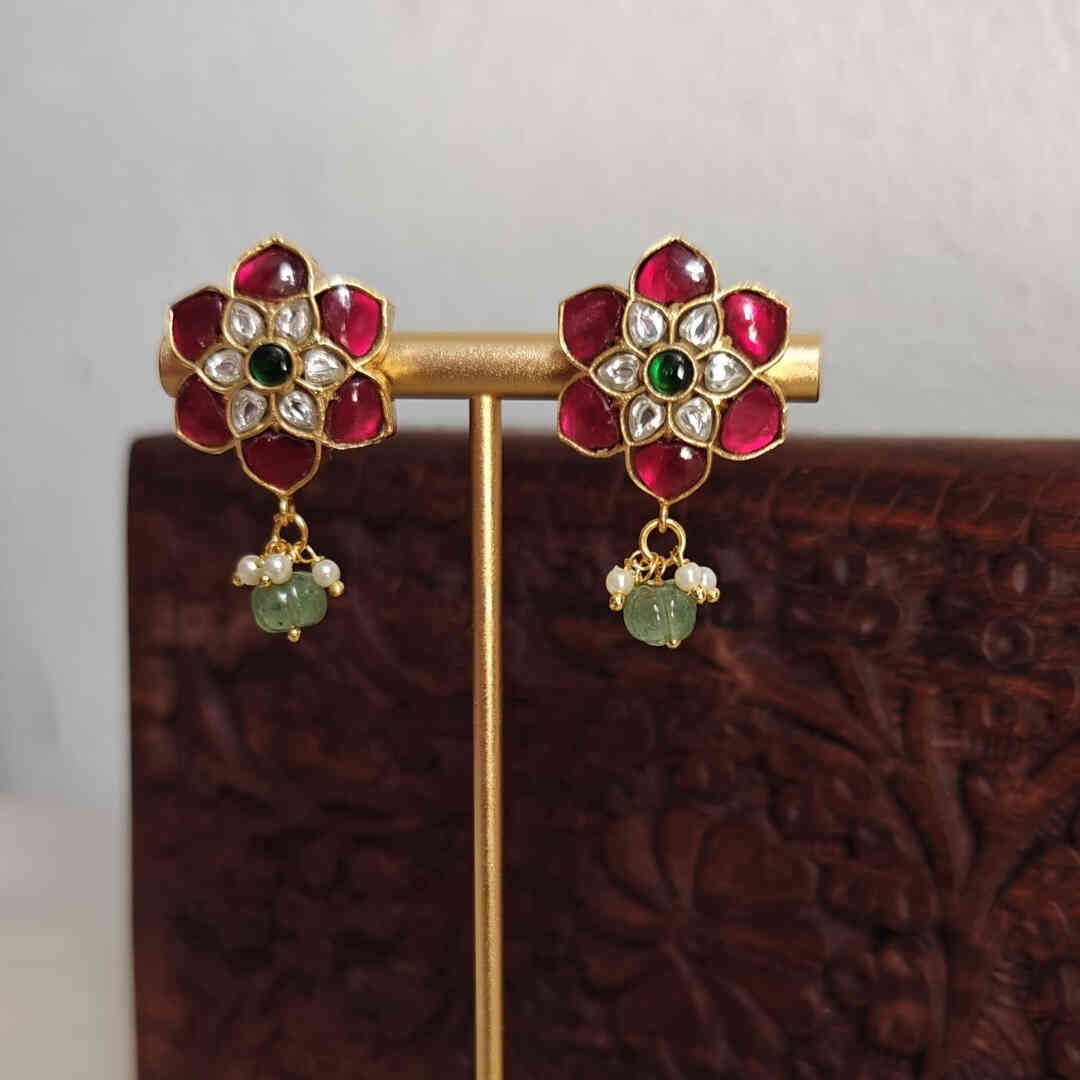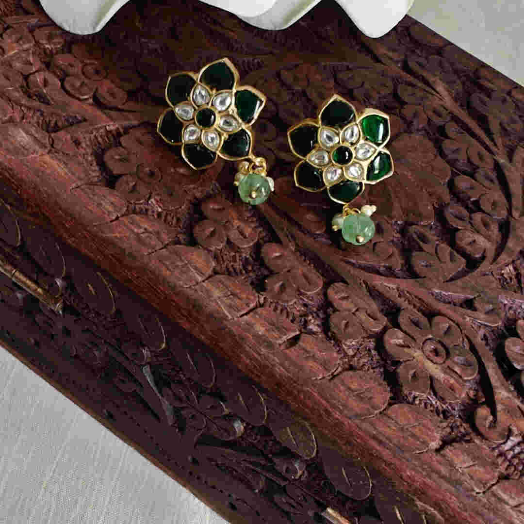 Jadau Kundan Studs With 2 Colors | Traditional Bridal Earrings | Lightweight Luxury